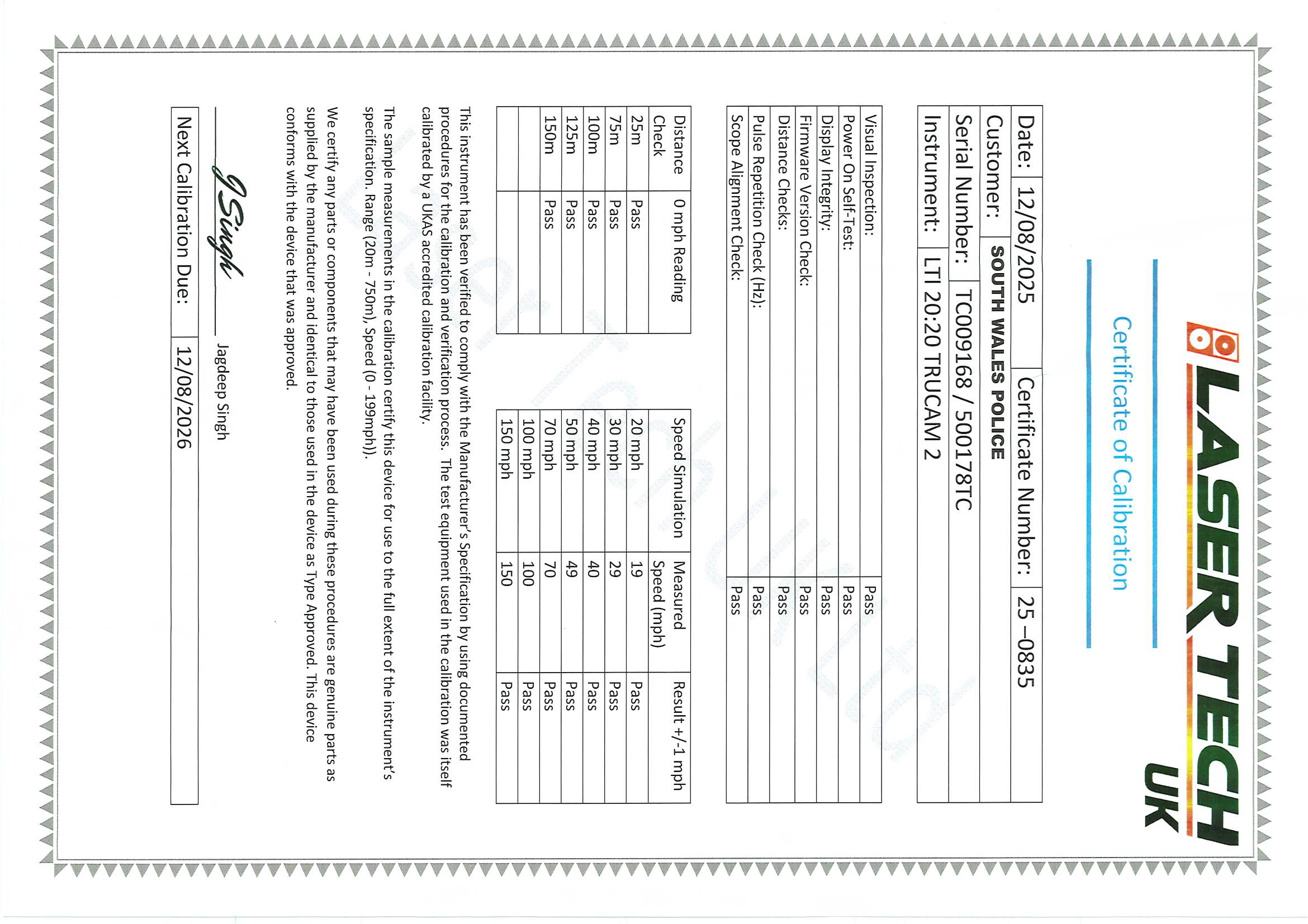 | LW06268 | 20/10/2026 | View Certificate |