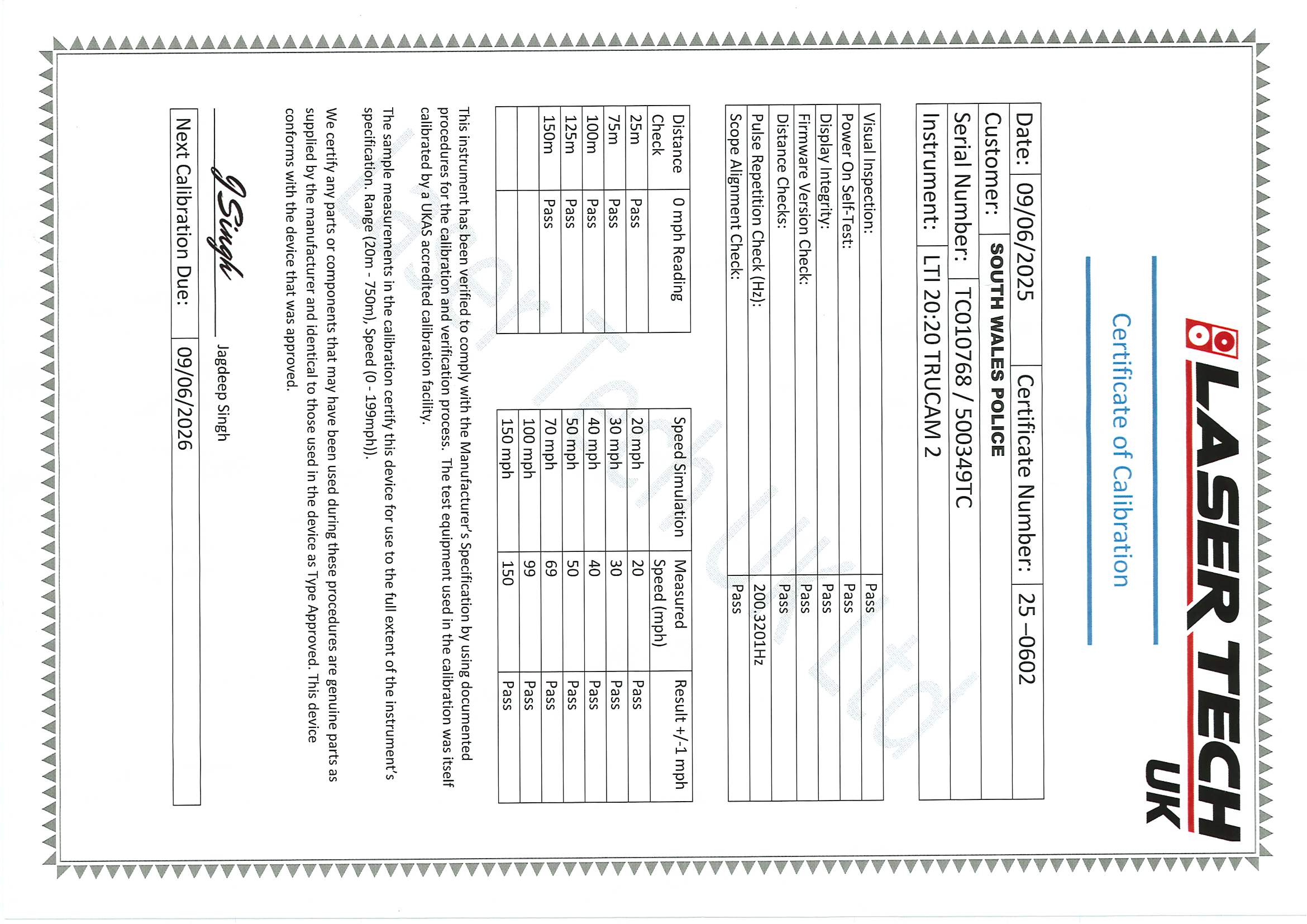 | LW06269 | 01/09/2026 | View Certificate |